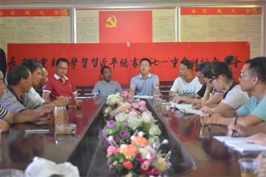 在长石村村委会会议室,我院李小林书记就学习习总书记“七一”讲话作了专题报告,刘风雪博士对接龙村全体党员学习习总书记“七一”讲话的报告进行辅导,易俊主任、杨竟成教授分别谈了学习习总书记“七一”讲话的感想。之后全体与会成员研讨扶贫政策,针对长石村独特的自然环境优势,应加大旅游资源的开发,推广生态旅游等等。