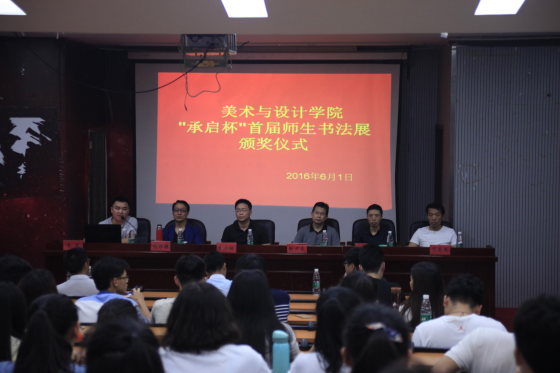 6月1日晚上7点30分,由ballbet贝博bb艾弗森美术与设计学院主办,书法教研室承办,美术与设计学院团总支及承启书画苑协办的“‘承启杯’首届师生书法作品展”颁奖典礼在逸夫楼报告厅隆重举行。