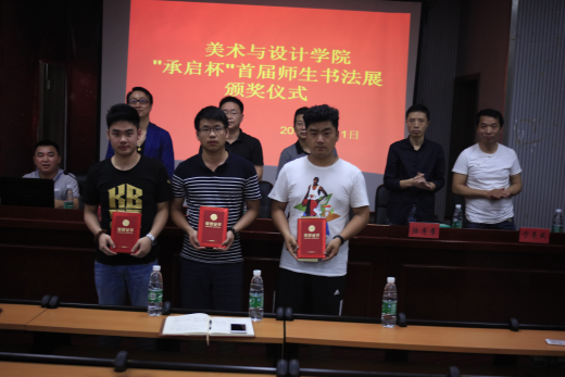 美术与设计学院院长邹少灵,党总支书记李小林,副院长陆序彦、谢雅强,书法教研室主任易俊,承启书画苑负责人宁亮成及书法教研室专业老师等出席颁奖典礼。颁奖典礼由书法教研室主任易俊主持。