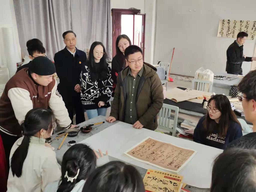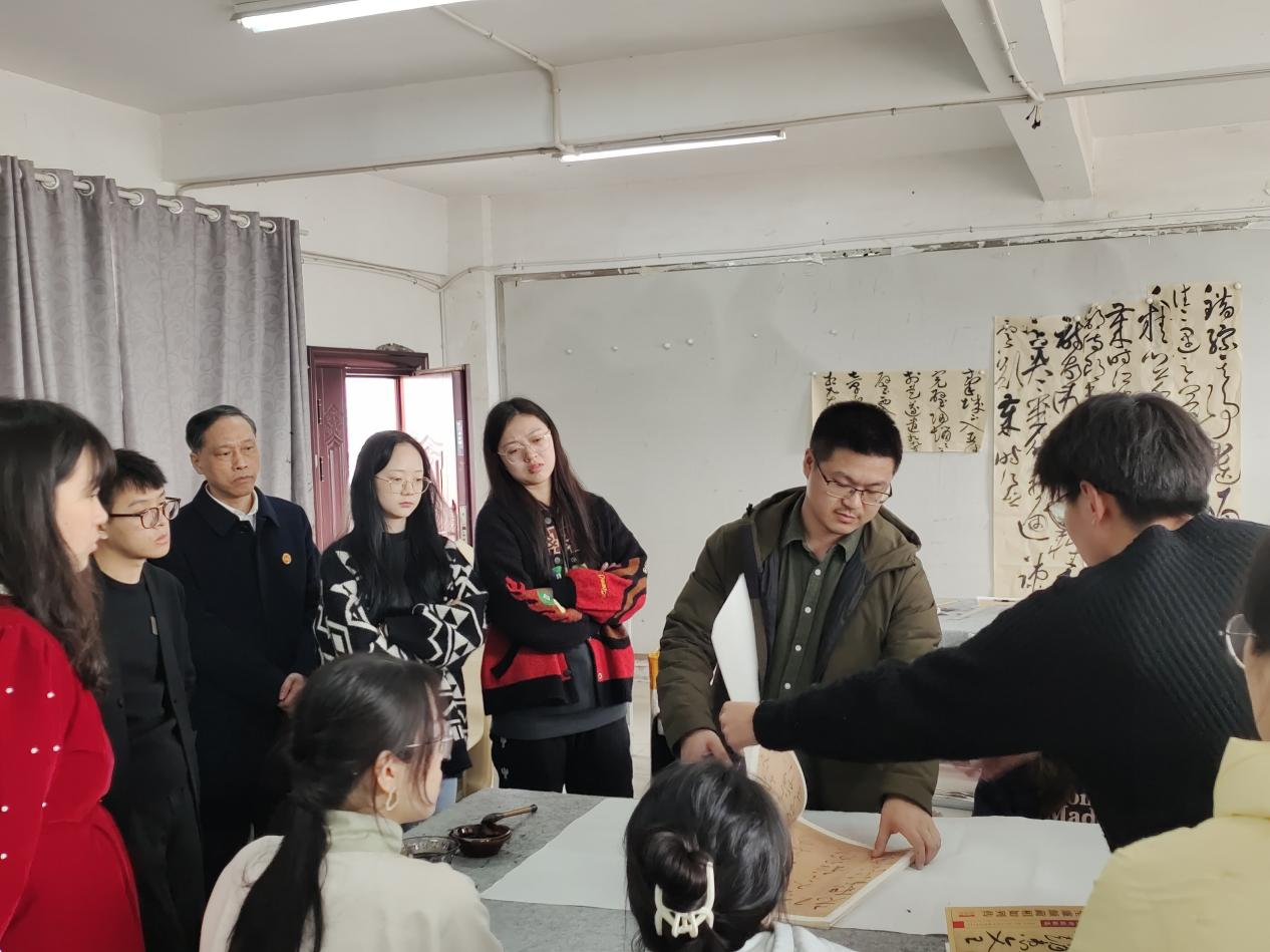 刘铁铭一行来到我院书法专业教师贺文彬的《草书创作》课堂,与大家一起仔细认真地听完该堂课程,并认真做了记录。他充分肯定了贺老师与学生在课堂上的互动交流,就如何调动课堂氛围等提出了建议。还着重强调老师要对知识点进行简讲、精讲,让学生喜欢进课堂。最后,刘铁铭与同学们进行了亲切交流,鼓励同学们在课堂上要积极主动、多思考,课间要及时放松,多走动、多交流。