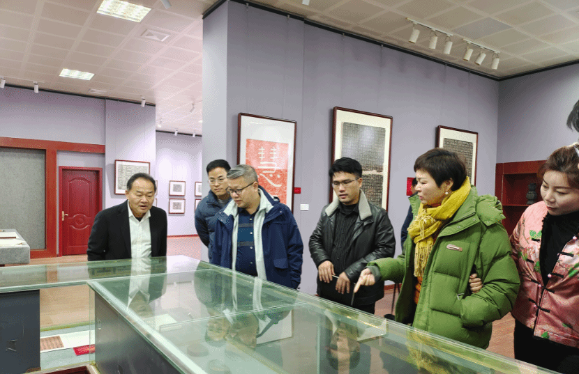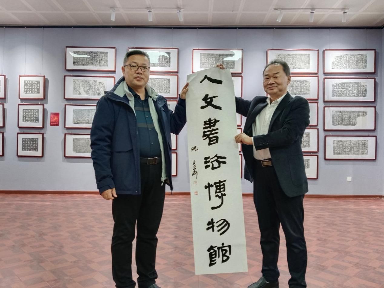 在校党委委员、副校长朱强等的陪同下,倪文华参观人文书法博物馆