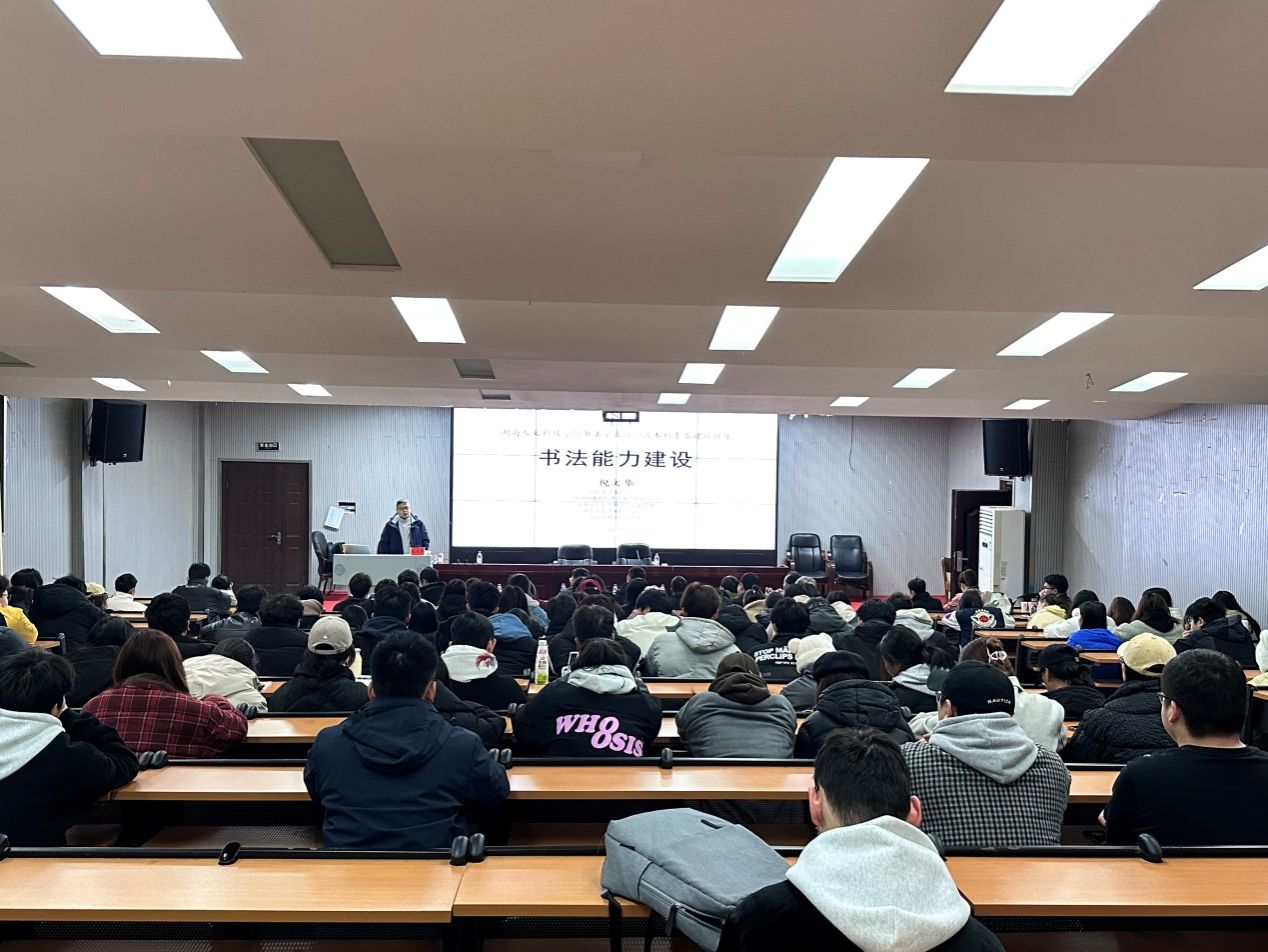 1月6日上午,应学校学术委员会邀请,湖南省文联党组成员、副主席、湖南省书法家协会副主席、湖南省书法院副院长倪文华来美术与设计学院为书法学专业学生做了题为《书法能力建设》的学术讲座。学校党委委员、副校长朱强,美术与设计学院院长陆序彦、副院长贺平、书法学专业师生和娄底市书法家协会同仁等聆听了讲座。讲座由陆序彦主持。