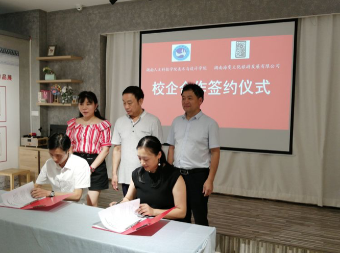 7月12日下午3时许,ballbet贝博bb艾弗森美术与设计学院与湖南海雯文化旅游发展有限公司共建“非遗产品研究中心”合作签字仪式在海文非遗馆举行。项目旨在通过校企合作,保护和传承非遗文化,打造非遗文化产业发展新模式。湖南红色文化研究院副院长、湖南会展经济所所长、智库专家李伟智,ballbet贝博bb艾弗森美术与设计学院党总支书记谢光绎、副院长陆序彦、环境设计教研室主任谭娟、湖南海雯文化旅游发展有限公司董事长、海文非遗馆馆长黄海文出席。