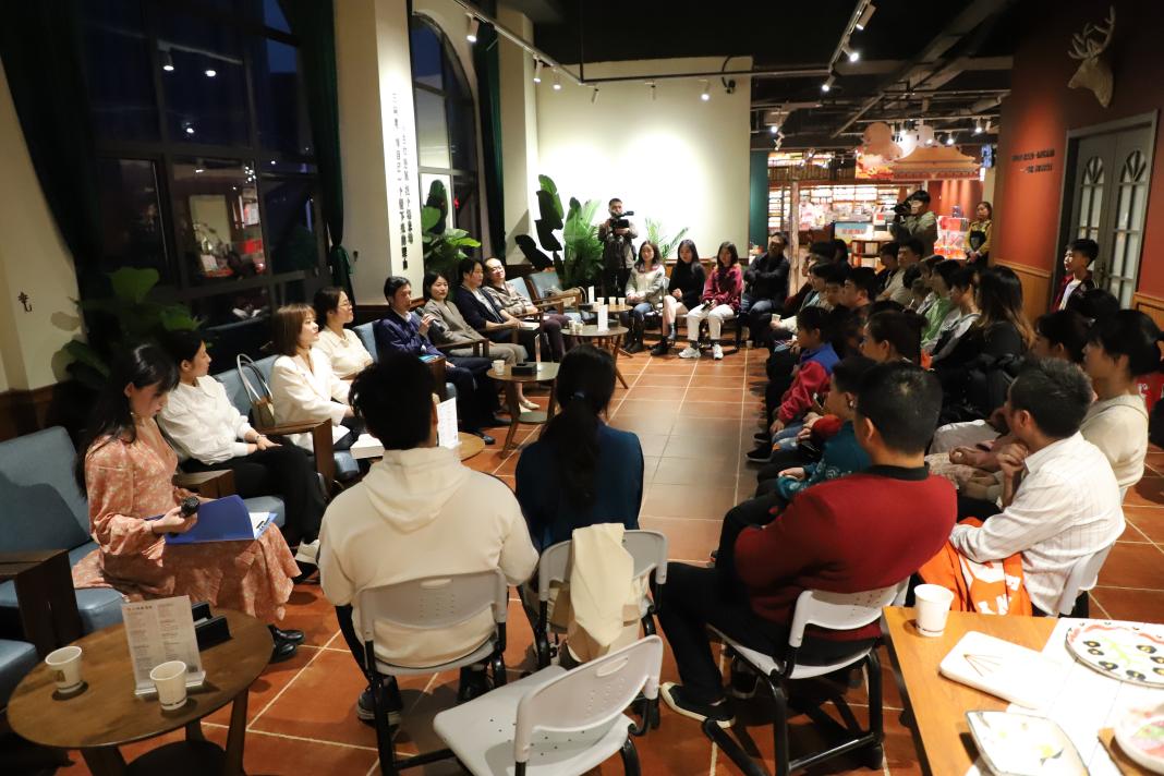 4月23日是世界读书日,由学院、院工会与娄底市三向度书屋、娄星区文旅广体局联合主办的“拾艺向阳”艺术主题读书沙龙在娄底市三向度书屋顺利开展。活动由娄底综合广播著名主持人曹拼主持,娄底电视台现场报道。出席本次活动的有院长陆序彦、副院长童玲、视觉传达设计教研室主任罗娇、视觉传达教研室全体教师、ballbet贝博bb艾弗森部分师生以及社会人士等共50余人。陆序彦为本次活动致辞:一家书店可以温暖一座城市,一座大学可以带动一个城市,希望这次由视觉传达设计教研室牵头美术与设计学院与三向度书屋的艺术沙龙是一个好的开头,把娄底文化与文创推向一个新的高度!
