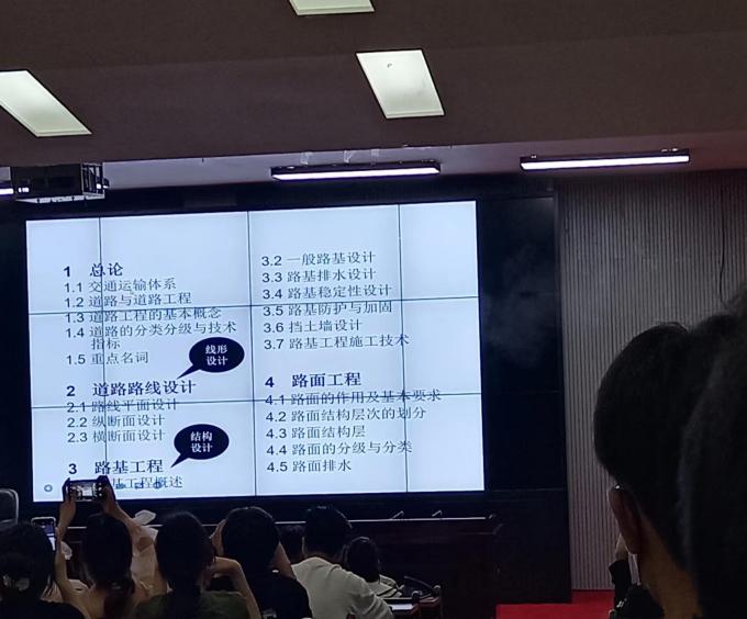 刘捷讲解了《道路工程概述》的总论、道路路线设计、路基工程、路面工程等四个部分的内容。交流会上刘捷通过提问的方式,与师生进行交流,氛围轻松活跃。最后,他希望环境设计专业的学生们多去实地考察,多从实际出发,根据实际创新自己的设计思路。