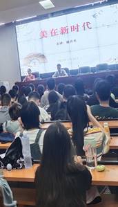 首先,簏山美术馆馆长戴伏兵在《美在新时代》的主题讲座中,与师生们分享了他的求学创业之路,详细分享了自己“我所构建的美”、“美术馆创办之心”等问题。他对读书的坚守、创业的艰辛和破难的坚韧,令人感慨。
