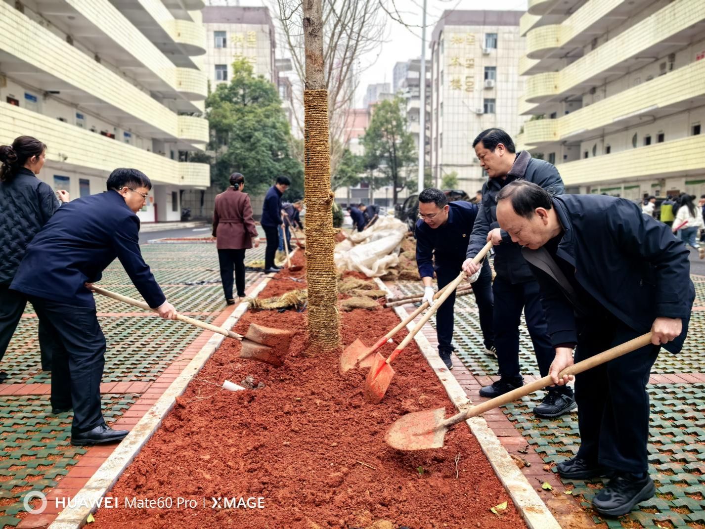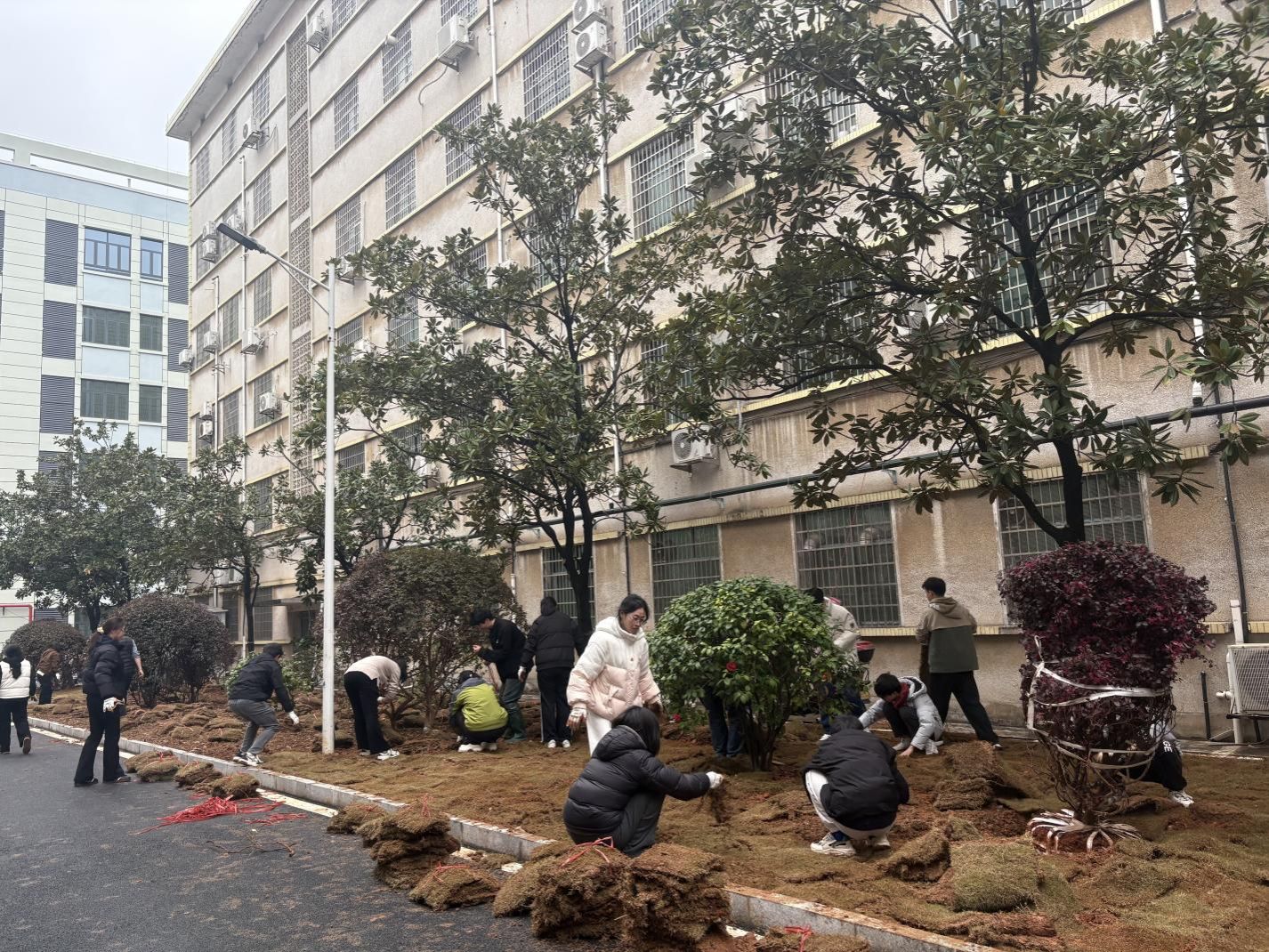 院所园林绿化中心教师彭日民和杨岚琪,专业讲授并现场指导银杏树、红叶石楠绿植球栽植及草皮铺设技术。师生党员及植物生产类专业学生分为4个小组,协作完成挖坑、施肥、培土、浇水等工作,实现实践教学与劳动教育同步推进,明显提升了师生专业素养与团队协作能力。