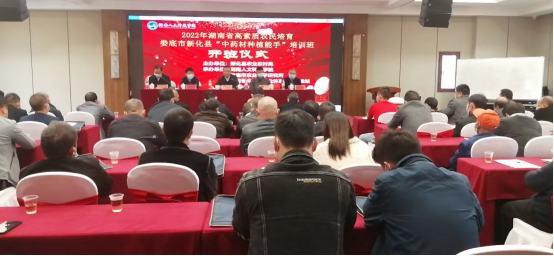 11月26日下午,2022年湖南省高素质农民培育新化县“中药材种植能手”培训在金丰大酒店3楼会议中心正式开班。新化县委农办主任、县农业农村局党组书记、局长谢建斌,县农业农村局总农艺师胡利民,农生院党总支书记胡少平、副院长(副所长)康林峰出席。新化县科教股和特色产业服务中心负责人,农生院培训中心的工作人员,新闻媒体记者,来自新化县各乡镇从事中药材生产的种植大户、农业龙头企业、农民专业合作社负责人或管理人员共70多人参加了开班仪式。仪式由康林峰主持。