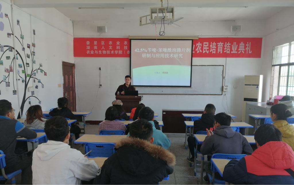 11月20日,农业与生物技术学院谭显胜博士在强毅楼601室做了“42.5%苄嘧·苯噻酰泡腾片剂研制与应用技术研究”的学术报告,资源利用与植物保护领域18级研究生、我院19级植物保护本科生30余人参加了本次学术讲座。