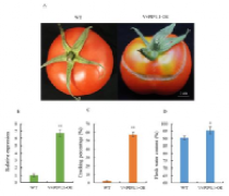 裂果严重影响果实外观品质和商品价值,而且果实开裂部位容易导致病原微生物的侵染,加剧病虫害传播,给生产造成巨大的经济损失。该团队通过对当前生产上的主栽葡萄品种进行连续2年的裂果性状调查,研究发现易裂品种的果皮和果肉细胞膨大不协调是造成葡萄果实开裂的根本原因;抑制水孔通道蛋白PIPs(Plasma membrane intrinsic proteins,PIPs)活性可以减少葡萄果实水分的吸收,降低裂果率;在对番茄的裂果调查中,表达水孔蛋白合成关键基因VvPIP1;1会促进果实水分的吸收,使果肉细胞面积增大,裂果率显著增加。