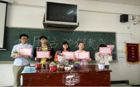 此次优团活动的主题是“绿色使者,化吾人文”,活动以自然为起点,志愿者通过参与草坪养护与管理、苗木修剪、校园木本植物调查等活动,充分了解了此次活动的意义,同时也感受到绿色带给人的快乐。志愿者领取了用他们劳动换来的盆栽,李铁琴和王梦楠分别为志愿者颁发草坪养护与管理奖项和优秀志愿者奖。志愿者感慨地说“一份耕耘就有一份收获,用我们的手来创造绿色,让绿色常伴我们左右。”
