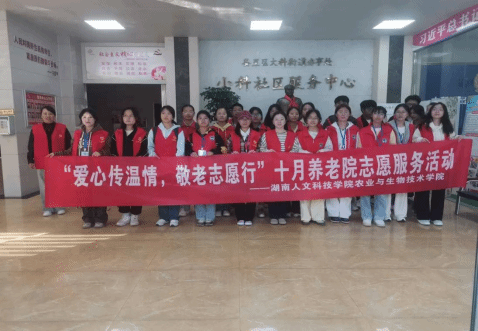 为积极响应国家号召,弘扬中华民族优秀传统美德,10月25日下午,农业与生物技术学院组织志愿者到娄底市小科社区安家养老院开展“爱心传温情,敬老志愿行”志愿活动,此次活动旨在通过实际行动为养老院的老人们送去关爱与陪伴,让他们感受到社会的温暖。