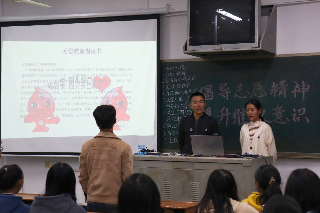 2019年10月23日晚,为在广大学生中积极倡导无偿献血奉献精神,进一步提升对第二课堂学分、毒品危害、学生自我权益维护等方面的认识;弘扬奉献精神,促进学校的精神文明建设和发展,农业与生物技术学院在致远楼教室开展了以“倡导志愿精神,提升维权意识”为主题的班会活动。参与此次班会活动的有农生院各班级班主任及大一全体学生。