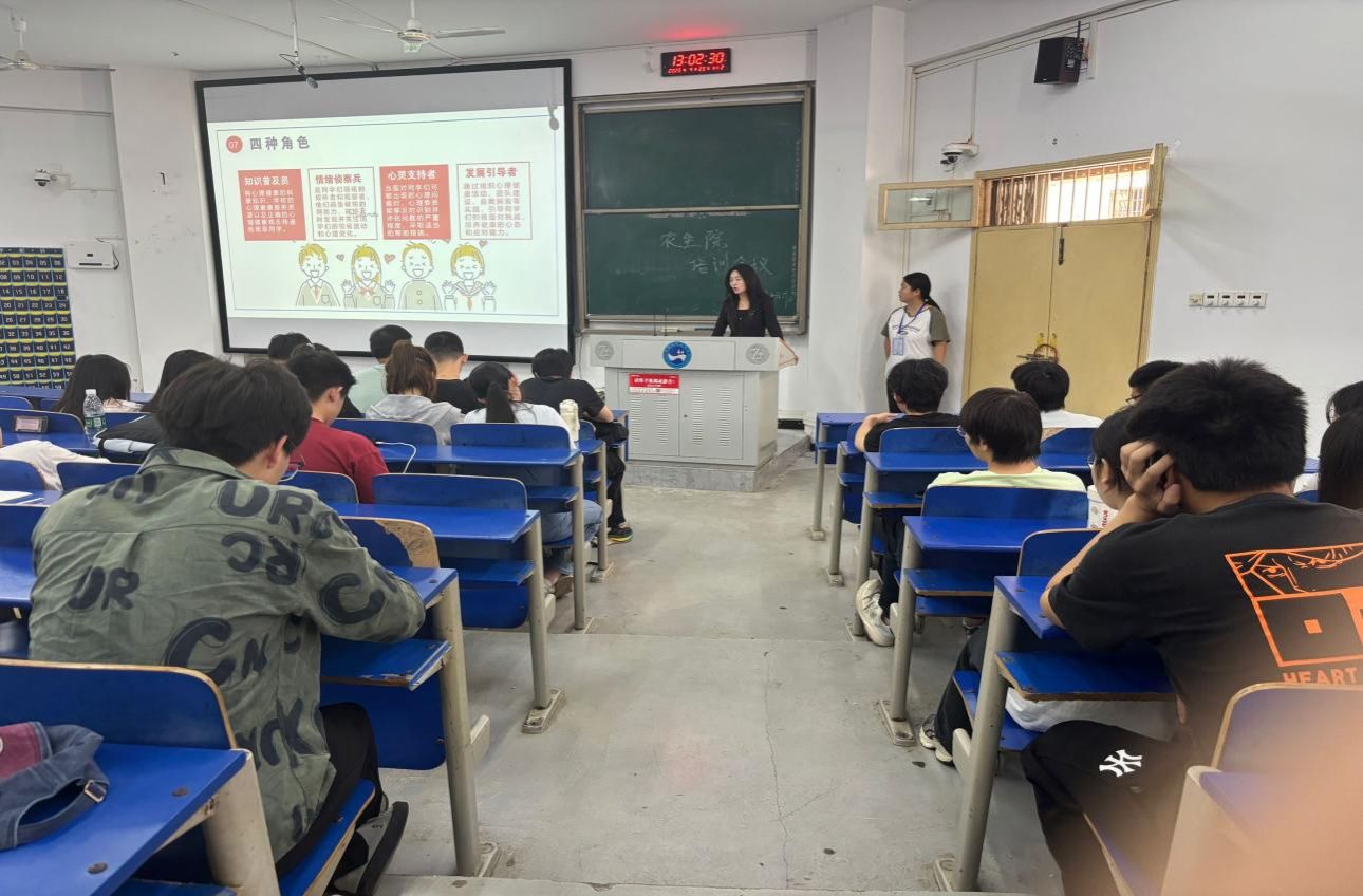 为了持续关注同学们的心理健康,关注学生心理情况,充分发挥心理委员的朋辈帮扶作用。2025年4月29日中午12:50,ballbet贝博bb艾弗森农业与生物技术学院在致楼119教室开展了心理委员培训会议,本次会议由心育专干陈月姣老师、辅导员邹艳葵老师主讲,农业与生物技术学院各班心理委员参加。