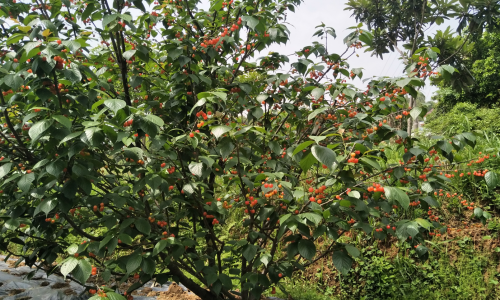 2013年桎木村村民从外地引进三个南方樱桃品种试种,2015年樱桃开始挂果,但一直存在严重裂果现象。2016年该村民联系上了农生院(农科所)康林峰技术团队,通过1年多的技术攻关,现已完全解决了樱桃易裂果的突岀问题。