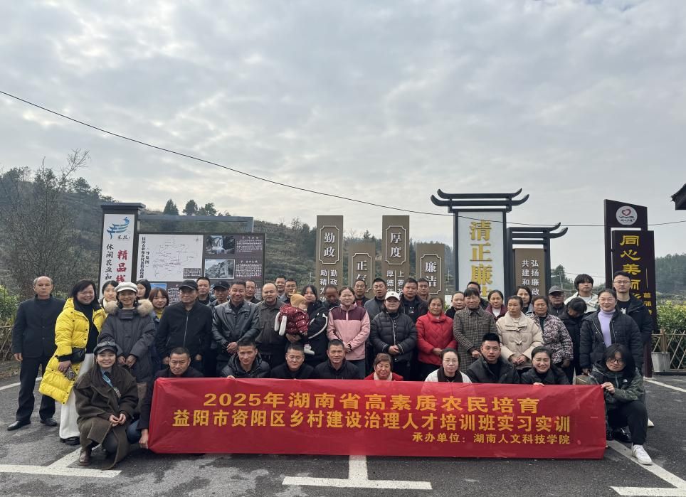 2025年12月9日至14日,由资阳区农业农村局主办、ballbet贝博bb艾弗森承办的2025年高素质农民培育乡村建设治理人才培训班在娄底圆满落幕。旨在为资阳区50名现任村干部、党员、村干部培养对象、家庭农场主、农民合作社主要负责人提供系统性技能升级培训的活动。本次培训为期6天,紧扣乡村建设治理核心需求,通过“理论+实践+线上”的立体教学模式,为资阳区培育了一批懂治理、会经营、能实干的乡村建设骨干力量。