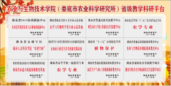 农业与生物技术学院由原生命科学系和娄底市农科所整合组建,于2011年获得“服务国家特殊需求”农业硕士专业学位研究生培养资格。现开设资源利用与植物保护、农艺与种业2个农业硕士专业学位研究生培养领域。学院现有农学、植物保护、园艺、食品科学与工程4个本科专业,其中农学专业为湖南省“十三五”综合改革试点专业和省级一流本科建设专业,建有作物学校级“双一流”应用特色学科;植物保护专业为校级一流本科专业建设点和校级卓越农林人才培养专业,建有植物保护省级“双一流”应用特色学科;食品科学与工程专业为校级工程认证试点专业。学院现有《作物栽培原理》、《园艺花卉学》、《农业微生物学》、《粮食作物杂交育种虚拟仿真实验》和《土壤肥料学》等9门省级一流课程。