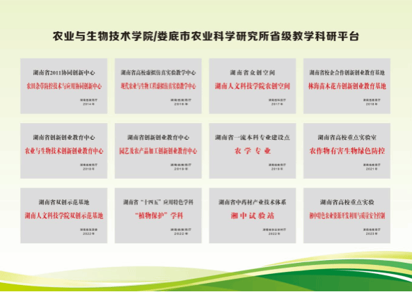 人才培养:院所现有农学、园艺、植物保护、食品科学与工程4个本科专业,以及农艺与种业、资源利用与植物保护2个农业硕士专业学位研究生培养领域。其中农学专业为湖南省“十三五”综合改革试点专业和省级一流本科专业建设点,植物保护专业为校级一流本科专业建设点和校级卓越农林人才培养专业,食品科学与工程专业为校级工程认证试点专业。建有《植物学》《土壤肥料学》等12门省级一流课程。现有在校本科生1753人,硕士研究生63人。近5年获国家级、省级以上学科竞赛奖励129项,其中国家一等奖7项。