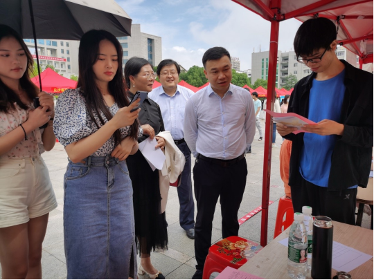 5月25日,按照党委副书记李军林一行到宁乡开展访企拓岗促就业专项行动交流会议精神,根据贝博应届毕业生的专业方向和求职意向,宁乡市经开区、高新区组团来贝博开展校园招聘。能源与机电工程学院、材料与环境工程学院、农业与生物技术学院、商学院以及其他学院相关专业500余名2022届毕业生参加招聘会。党委委员、副校长曹鑫到现场指导并与用人单位和毕业生亲切交流。