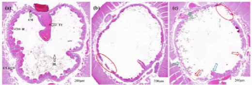 图1 锑暴露对蚯蚓肠道组织切片的影响