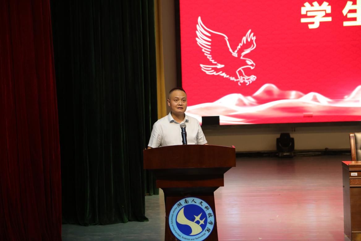向国红致欢迎辞并介绍校情院情。他希望,全体新同学要以主动姿态融入新环境,突破被动学习模式,在探索中培养问题意识,在实践中锤炼创新能力,实现从知识接收者到创新引领者的角色转变;他强调文理交融的重要性,鼓励通过参与学术讲座、学科竞赛、社会实践等多元活动完善人格结构、激发思维活力,成长为兼具人文素养与科学精神的复合型人才;他倡导知行合一的成长路径,勉励大家在服务社会的实践中了解国情民情,以“谋近以致远,养根而俟时”的校训精神为指引,将阶段性目标与长远规划相结合,在脚踏实地中抵御浮躁诱惑,在砥砺前行中实现个人价值与时代使命的统一。