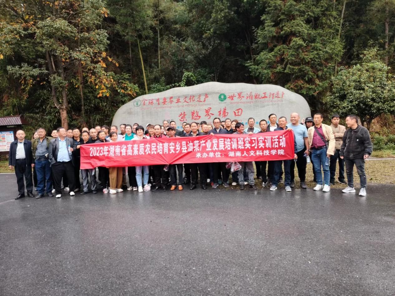 6日,学员们饶有兴趣地考察了娄星区智慧农业产业园、湖南省农民田间学校--伍妹子生态农庄。9日,到访了新化国梁米业基地、文旅结合考察了新化紫鹊界梯田灌溉系统。11日,观摩了位于双峰县的湖南农友机械集团、双峰灯塔米业公司生产或销售车间;文旅结合参观了灯塔艺术农场、曾国藩故居,接受红色文化教育。13日,调研了桥头河油菜基地、湖南省博盛生态农业技术开发有限公司。所到之处,公司负责人全程陪同,随行专家跟踪答疑解惑,就油菜高产栽培、“稻再油”关键栽培技术和学员们进行了现场深入指导和交流。一路上,留下了教师耐心解答、学员们勤学好问的身影。同时,农业企业老板们热心传经送宝,加深了学员们对知识的理解和技能的掌握。