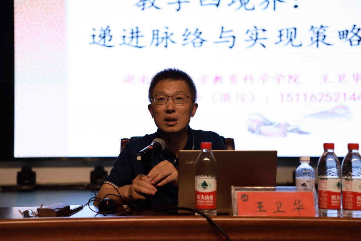 湖南师范大学王卫华教授、博导做了“教学四境界:递进脉络与实现策略”的专题讲座,他从要提升教学境界的原因、教学的四重境界(适应教学、有效教学、高效教学、魅力教学)、教学境界的递进脉络、实现教学境界递进的策略四个方面给教师阐述了如何做一个好老师,如何做一个有魅力的老师。