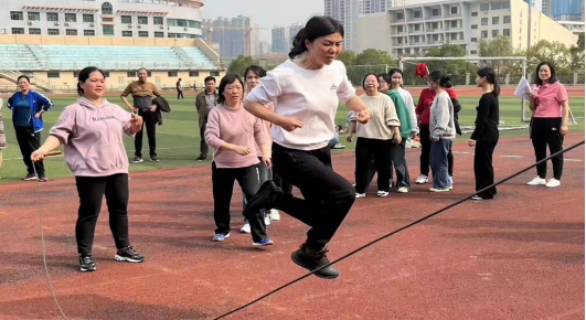 为了庆祝“三·八”节的到来,3月7日下午,学校工会组织开展教职工跳绳比赛,数金院分工会一共派了两个队参赛。