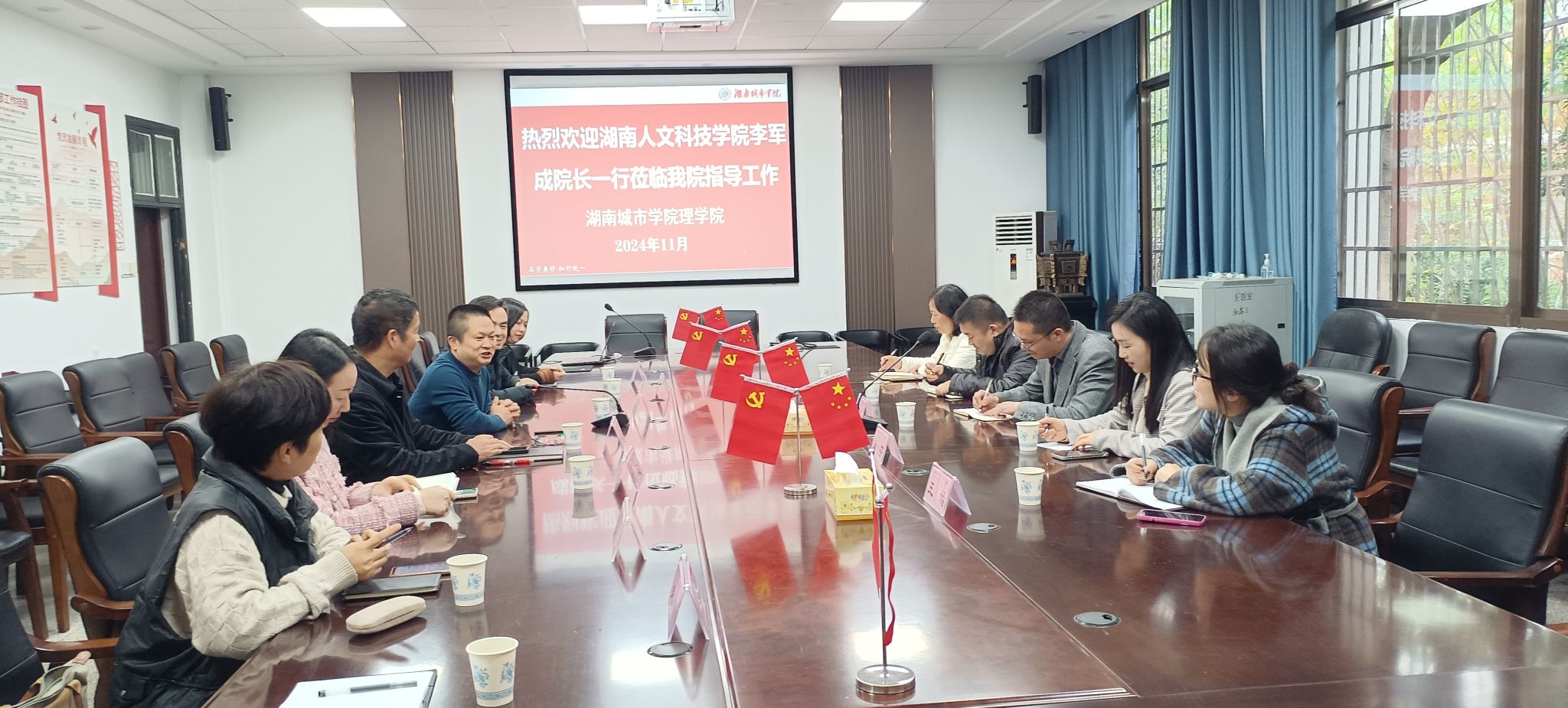 11月22日下午,数学与金融学院院长李军成行政办、教务办、学工办相关人员到湖南城市学院理学院交流本科教育教学审核评估工作经验。湖南城市学院理学院党委书记舒谷生、院长陈暑波、副院长代安定、党委副书记陈超以及行政、教务、学工部分教师参与座谈交流。