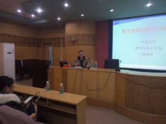 在报告中,韩教授分别从什么是数学建模、数学建模的思想方法、数学建模的创新性体现等几个方面做了深入浅出的阐述。韩教授还从汶川地震、飞机管理等实际数学建模案例出发,介绍了如何撰写好一篇优秀的数学建模论文以取得较好的数学建模竞赛成绩。最后,数学与金融学院院长陈国华教授对报告作了总结,并鼓励同学们踊跃参加数学建模活动,不断提高实践动手能力,为今后的发展奠定坚实的基础。