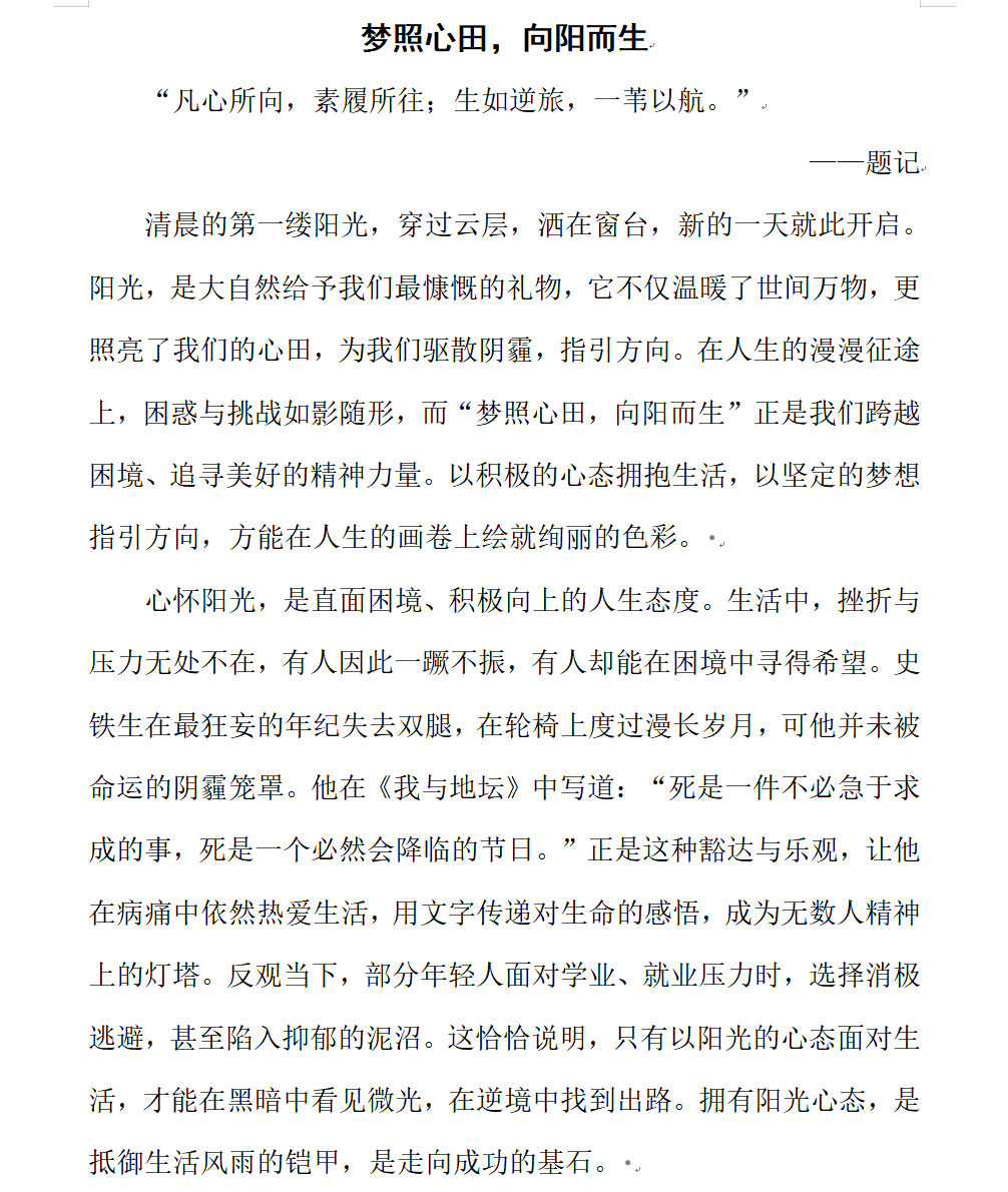 为增强学生心理健康意识,4月15日,数学与金融学院举办以“梦照心田,向阳而生”为主题的征文比赛,面向全院学生征集作品。