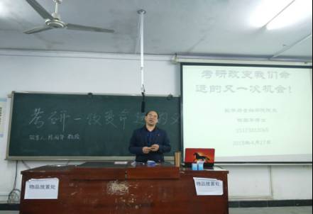 陈教授然后介绍了我院以往考研情况,以此来鼓励大家。并从考研的意义,什么时候考研复习最佳,考什么样的学校和专业等方面并结合考研成功的学长学姐的考研经验进行了详细的讲解。最后告诫大家,考研其实最重要的是坚持,坚持就是胜利!