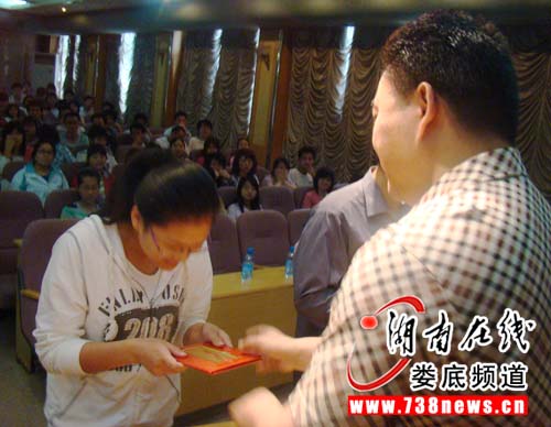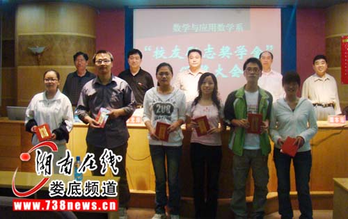 湖南在线娄底讯(杨胜华 杜鹃)5月24日,对于即将离校的学生侯颖等6人来说是一个难忘的日子,在当天举行的ballbet贝博bb艾弗森数学系校友励志奖学金发放大会上,她们获得了校友励志奖学金基金会提供的600元/人的励志奖学金。该系党委书记杨笃庆告诉记者,该系85届毕业生曹翰文发起成立的校友励志奖学金基金会,将成为该系学生面对挑战、努力成才的不竭动力,同时也让正在经济严冬中的寻找工作岗位的学子感受到了社会大家庭的温暖。