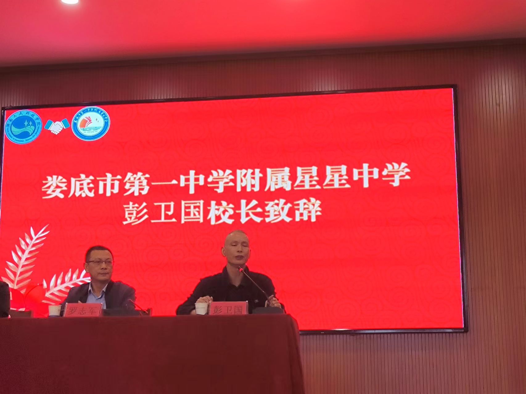 娄底一中附属星星中学校长彭卫国致欢迎辞。彭卫国介绍该校的相关情况,并建议见习生们在见习过程中“且学且悟,且行且思,知行并进”,在实践中提高自身的专业素养。