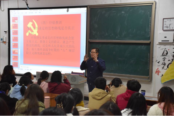 11月14日晚,数学与金融学院特邀文学院党总支书记尹钟宏在学而楼409教室为入党积极分子主讲“中国共产党的宗旨、性质基本路线及党的纲领和组织原则”专题党课。