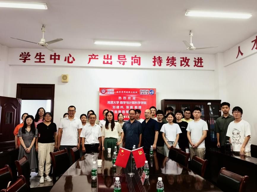 9月25日,湘潭大学数学与计算科学学院刘建州教授、张娟教授应邀来学院作学术报告,学院部分教师及数学与应用数学专业创新班学生代表参加,报告会由学院党总支书记陈国华教授主持。