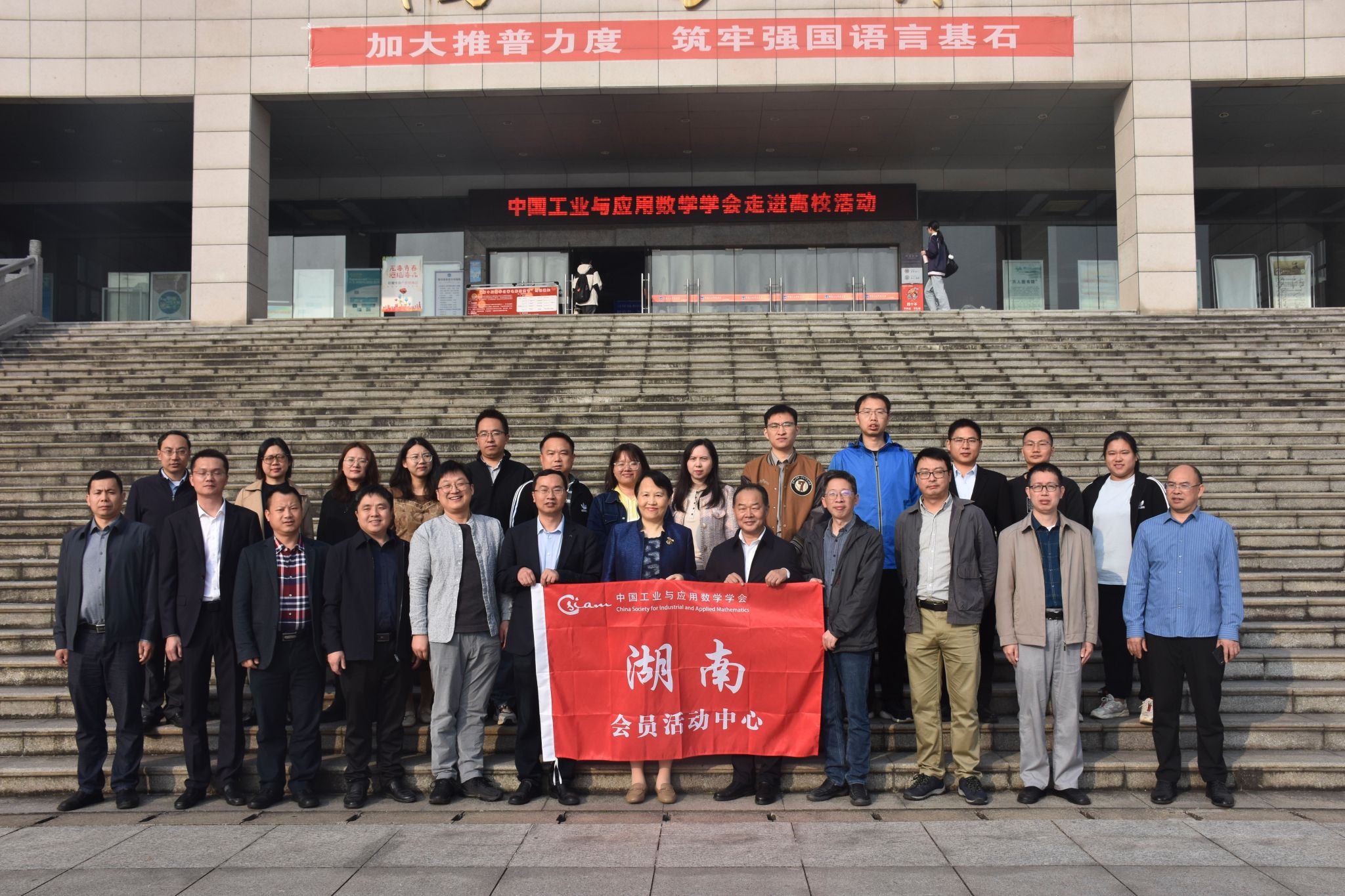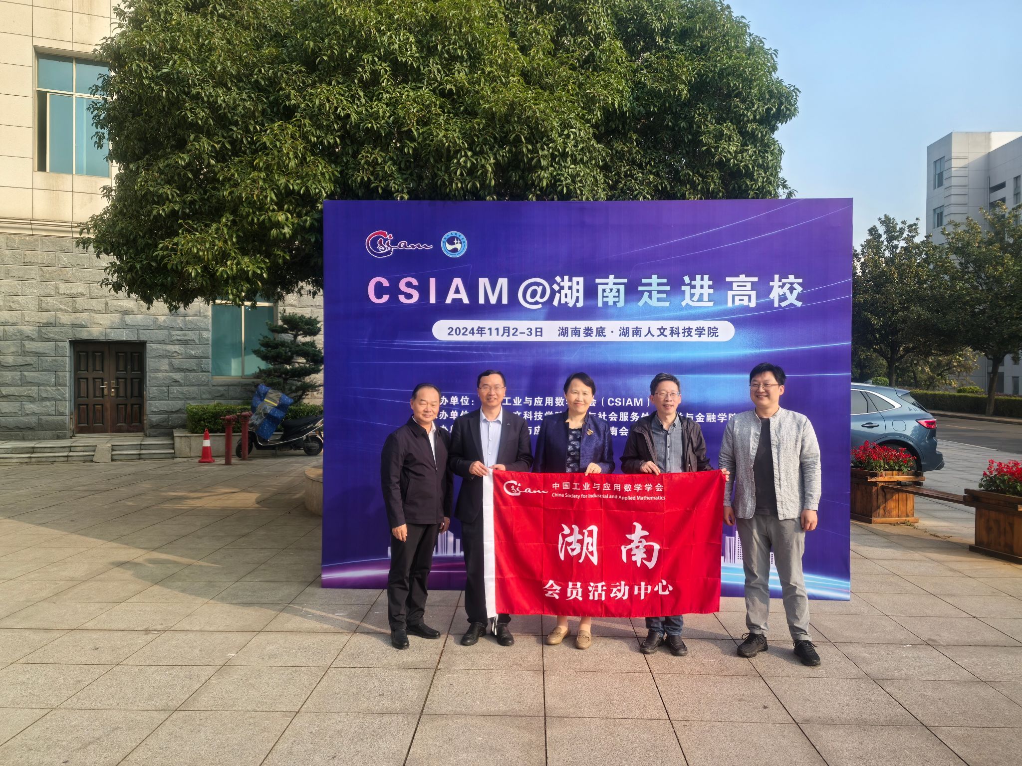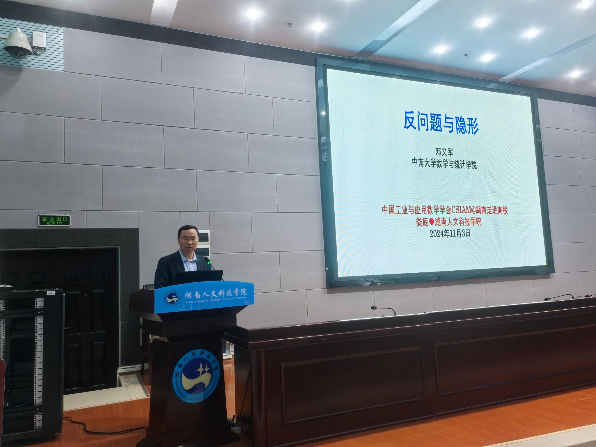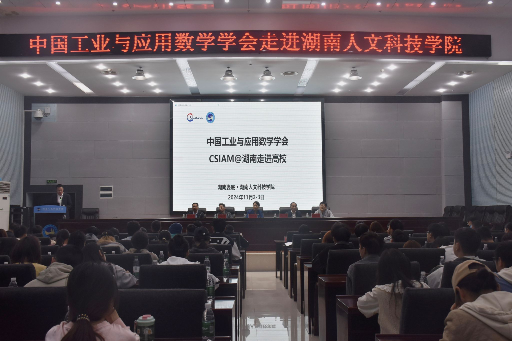11月3日,由中国工业与应用数学学会(CSIAM)主办,科研与社会服务处、数学与金融学院承办,中国工业与应用数学学会湖南会员活动中心协办的“CSIAM@湖南走进高校”活动在贝博图书馆二会议室顺利举行,来自国防科技大学、中南大学、湖南大学、湖南师范大学、湖南第一师范学院的11名数学工作者以及科研与社会服务处负责人、数学与金融学院师生代表共计130余人参加。校党委副书记朱强出席开幕式并致辞,中国工业与应用数学学会湖南会员活动中心主任、中南大学刘圣军介绍学会有关情况,开幕式由数学与金融学院院长李军成主持。