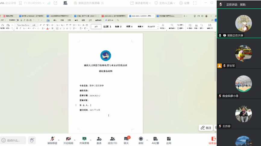 1月2日晚,学院通过腾讯会议召开数学与应用数学专业师范认证持续改进课程报备材料提交工作推进会,院长李军成、数学与应用数学教研室主任吴斯、相关课程负责人参加,会议由副院长罗志军主持。