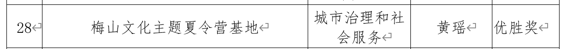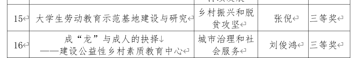 据悉,我院学生荣获两个三等奖、一个优胜奖。其中,由院长张卫明教授、张得才老师指导,19级思政一班张倪负责的《大学生劳动教育示范基地建设与研究》项目和由副院长杨国辉博士指导,18级思政一班刘俊鸿负责的《成“龙”与成人的抉择——建设公益性乡村素质教育中心》项目荣获三等奖,由张得才老师指导,18级思政二班黄瑶负责的《梅山文化主题夏令营基地》项目荣获优胜奖。