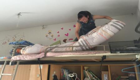 申彦舒副馆长在宿舍为同学们叠被子