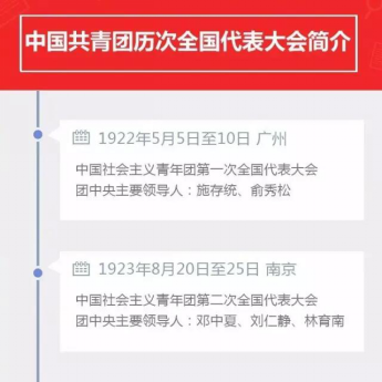 近日,我们在官方微博、微信等平台上收到了很多留言,有不少网友在建团95周年之际,想更多地了解历次共青团全国代表大会的情况,为此我们做了一些梳理,供大家学习参考。