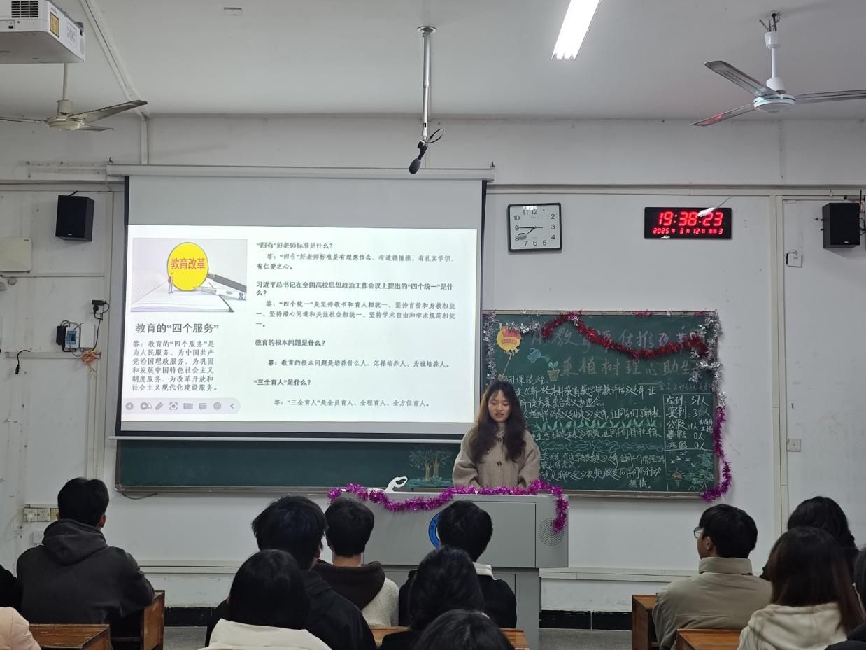 3月12日晚,校团委组织全校各团总支部统一开展“教育评估推改革 秉植树理念助生态”主题团课。