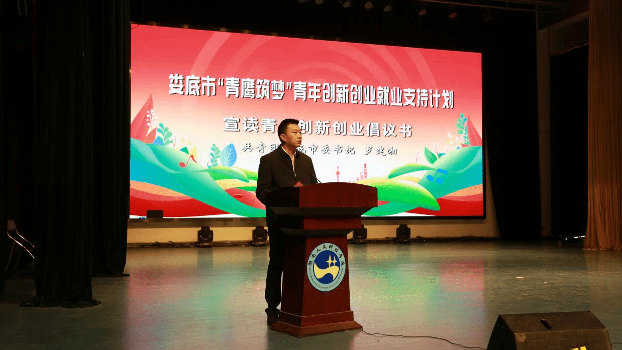 11月27日,娄底市“青鹰筑梦”青年创新创业就业支持计划“大学生创新创业大讲堂”示范性宣讲活动在贝博逸夫楼多功能厅举行。娄底市委副书记、市委政法委书记蒋天海出席并讲话,ballbet贝博bb艾弗森校长盛明科致辞,副校长谭峰亮出席,团市委、市教育局、市科技局、市人社局等单位的主要负责人、娄底农商银行、兴娄担保、农担公司等金融机构主要负责人、首批娄底市青年创业导师代表和高校学生代表共计600余人参加活动。