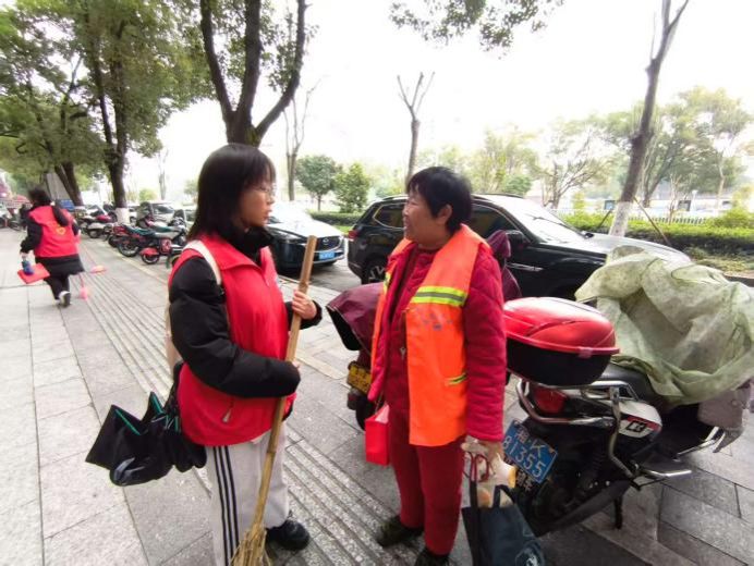 3月8日上午,马克思主义学院团学会青工部全体成员与学院爱心志愿者前往校园周边地区开展了“春‘锋’送暖,爱满环卫”志愿服务活动。