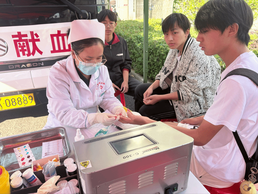 活动中,校团委副书记张莎莎以一名普通献血者的身份,全程配合完成健康征询、血液检测及采血等流程。采血过程中,她面带微笑,向镜头比出“点赞”手势,并谈道:“无偿献血是救死扶伤的善举。作为一名教育工作者,不仅要传授知识,更要以实际行动诠释责任与担当,希望通过自己的参与,激励更多青年投身公益、践行使命。