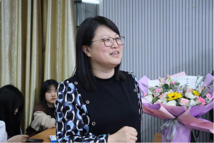 (图为校团委刘佳副书记正在向周任慧教授提问)