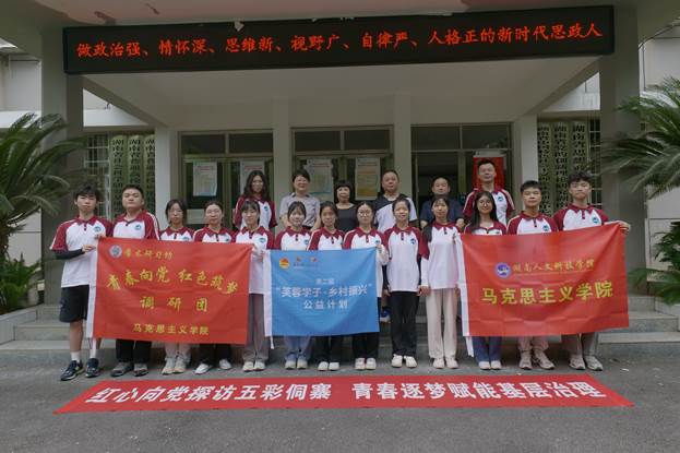 本次调研团在总指挥马克思主义学院院长张卫明教授,指导老师周浩博士、李婉溶老师的指导带领下前往邵阳市绥宁县乐安铺乡大团村展开实地考察,将调研报告写在大地上。校团委副书记刘佳、马克思主义学院党政领导班子前来欢送。