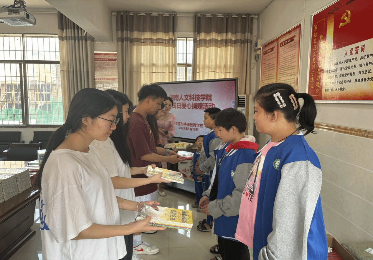在全国助残日即将来临之际,2024年5月15日上午,ballbet贝博bb艾弗森联合娄底市特殊教育学校开展了以“真情暖童心,相护伴成长”为主题的爱心捐赠活动。ballbet贝博bb艾弗森校团委兼职副书记肖毅、教育学院辅导员文思婕、特殊教育学校党支部副书记杨德清、德育副校长周健、政教负责人杨芳和德育干事廖勋建以及双方学校的学生代表出席了本次活动。