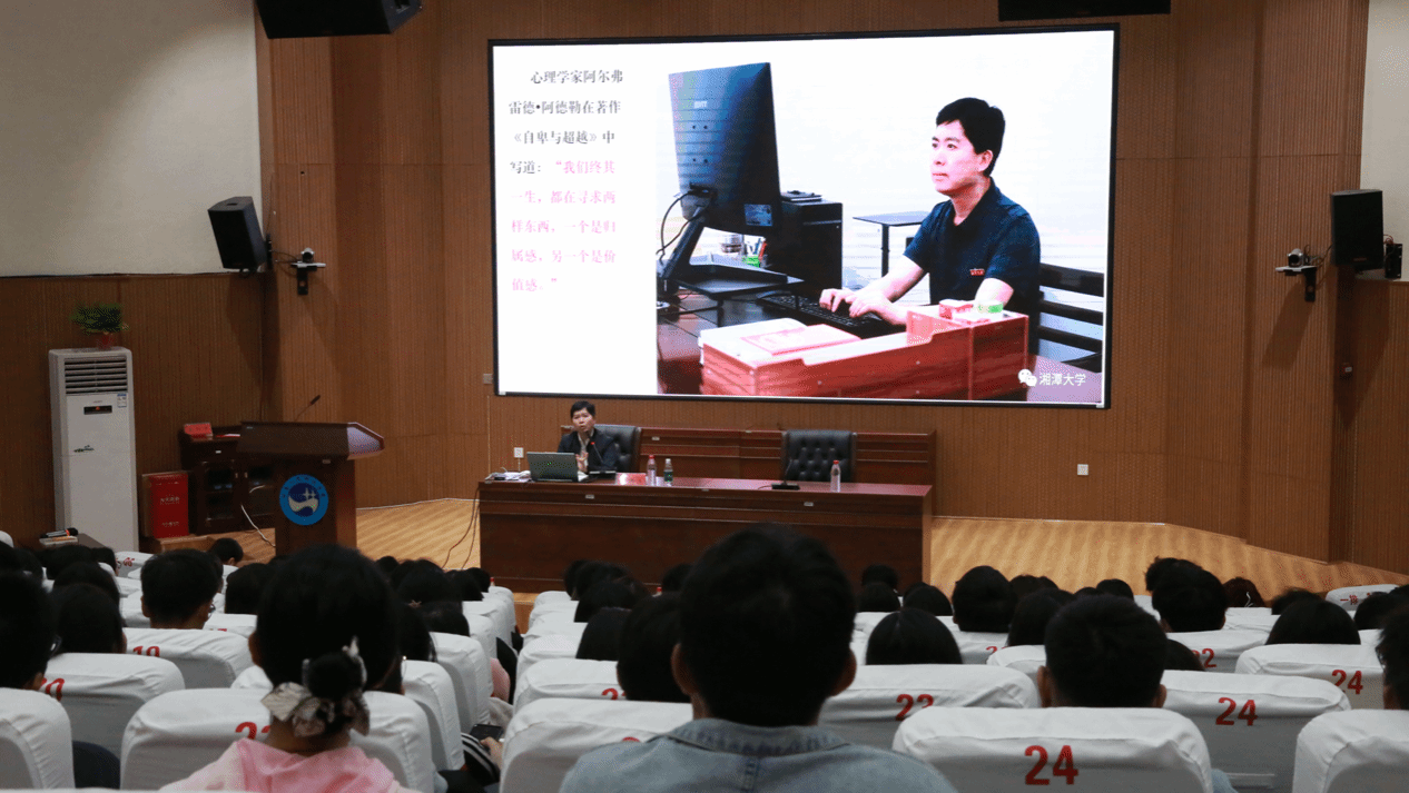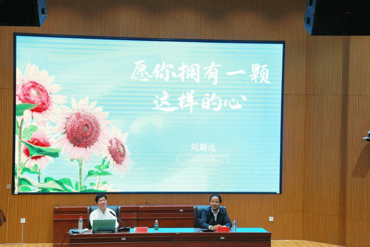 10月16日下午,湘潭大学刘期达老师在匠成楼报告厅讲授“愿你拥有这样一颗心”生命教育主题讲座。校党委副书记、校长盛明科出席,湘潭大学土木工程与力学学院党委副书记欧阳巍,贝博团委和各学院团总支相关老师与300余名团校学员一起参加讲座。