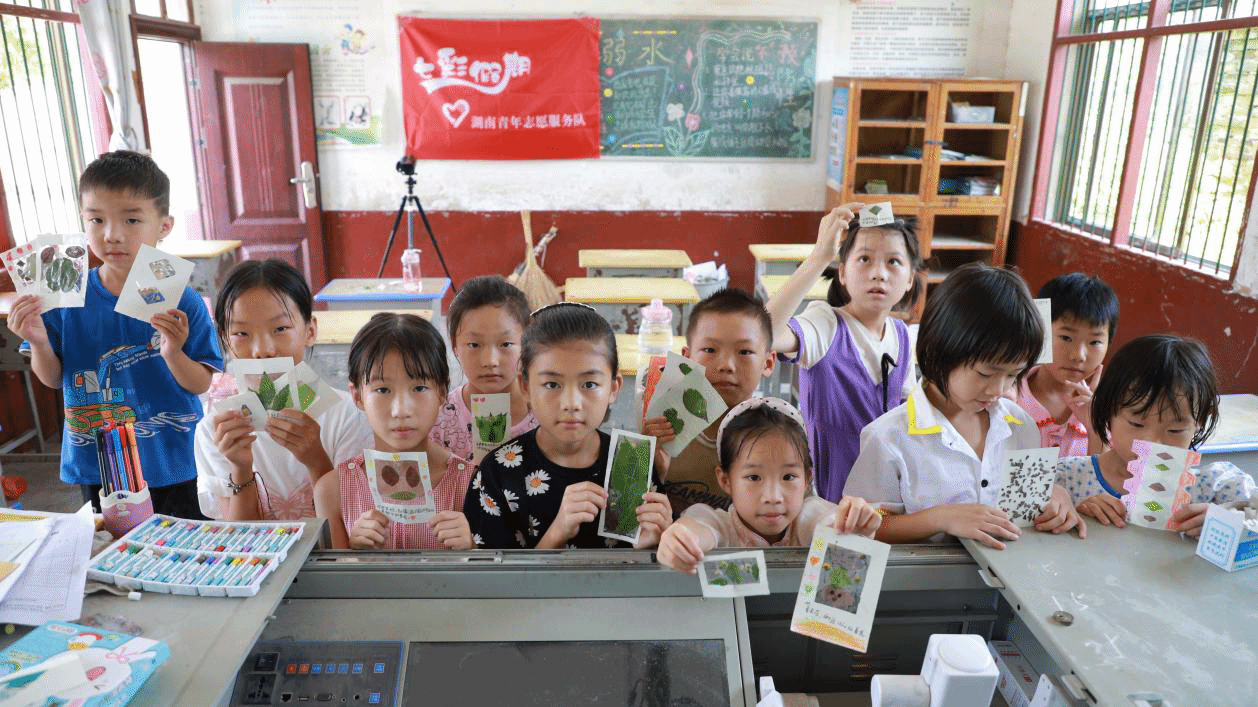 7月6日,ballbet贝博bb艾弗森“彩虹计划”志愿服务队支教组以“拼贴诗与树叶书签”为主题,开展了一堂特色美育课程,为孩子们的暑假增添了别样色彩。